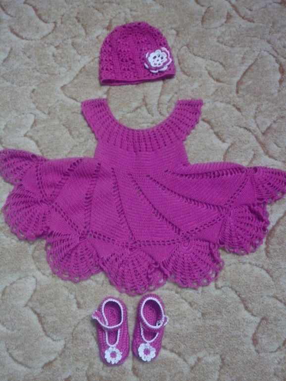 связала я этот комплект в подарок племяннице. расчитывала на 6 месяцев в июле. погода не балует теплом. в жару не должно быть жарко, пряжа очень хорошая приятно на тело