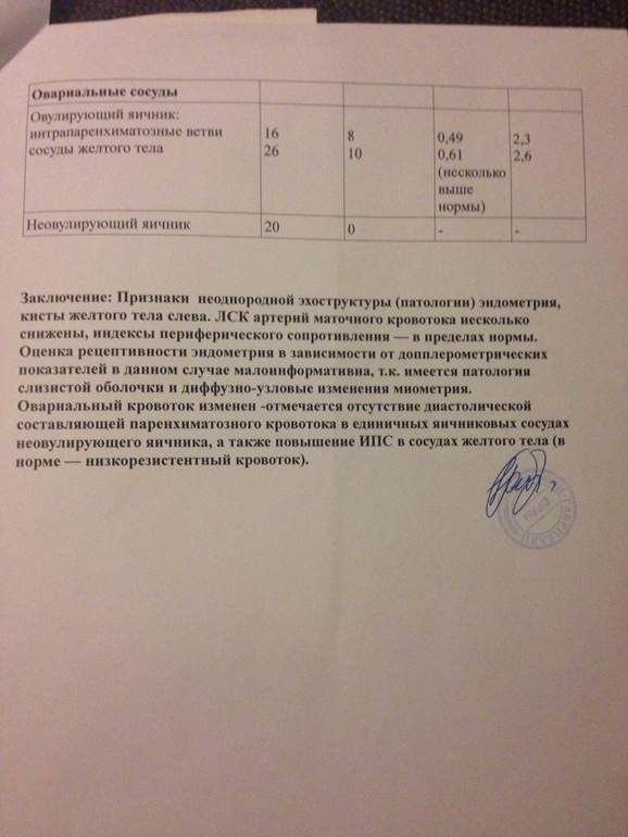К врачу просьба не отсылать, врач, у которой наблюдаюсь, считает это исследование в принципе не информативным, т.к. если есть овуляция, то значит кровообращение в норме. Врача, который действительно принимает во внимание допплер пока не нашла(((