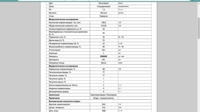 Блин,нет кнопки редактировать. Там в Диагнозе Тератоззоспермия и Пиосмермия. Нормальных спермиков 23%,при норме больше 30. Лейкоцитов 250.000.000,при норме до миллиона.Понятно,воспаление какое-то...