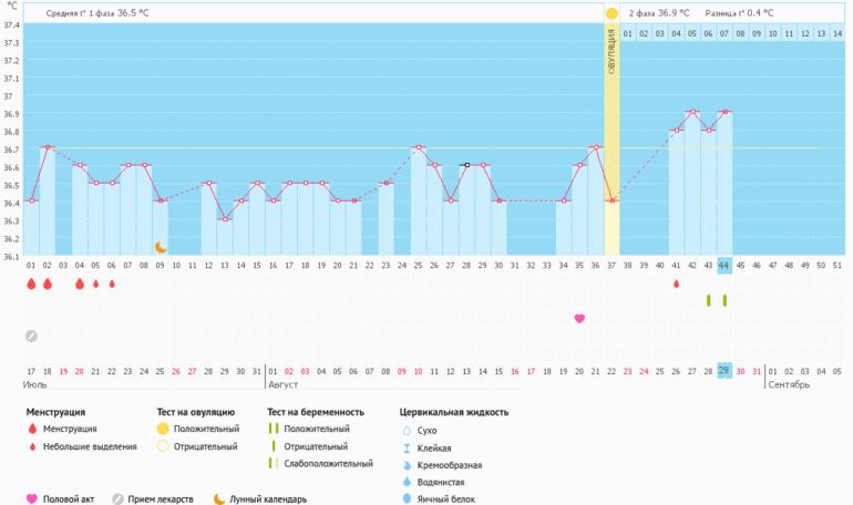 Базальная температура, ТТ, графики БТДевочки, как думаете, была О или нет???? программе я не особо верю... и как же я рада что одна полосочка. УРЯЯЯ!