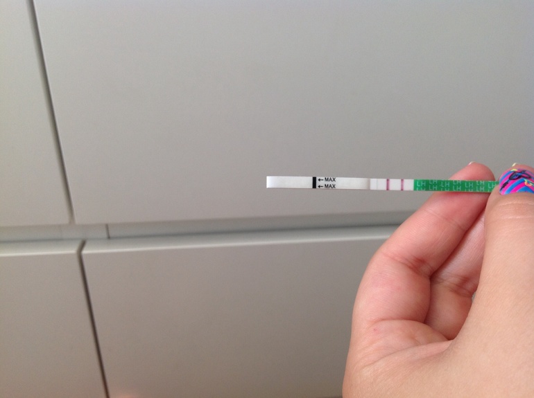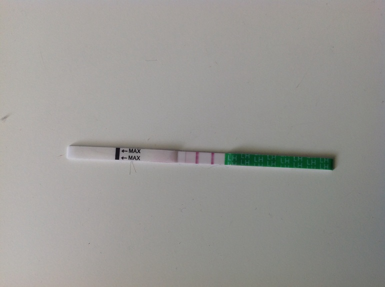 Там тест полоска вставляется в маленький приборчик, только я не помню: сначала писаешь-потом вставляешь или наоборот, и появляется улыбка и пищит если да), а на след день уже не было такой улыбки)