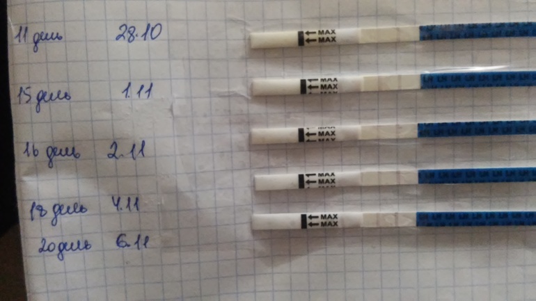 Ждем дня Х (Признаки беременности / Тесты)девочки всем привет) в этом цикле начали активно планировать. цикл не постоянный примерно 32-45 дней, бывало что доходило до 60 и более дней,бывало крайне редко. на поседнем пройденом узи (проходила летом) все было в норме. Приобрела тесты на овуляцию,и начала тестится с 11 дня и по 20, не очень я понимаю в какой день произошла овуляция и произошла ли она вообще?! я думала на предпоследний тест,потому что после этого дня в животе что то не понятное все время бурлит,иногда по баливает,чувство наполнености,и не могу спать на животе(тянет на бред или самовнушение))) вот как быть разъясните мне)) конечно видно плоховато,на самом деле все намного ярче выглядит))