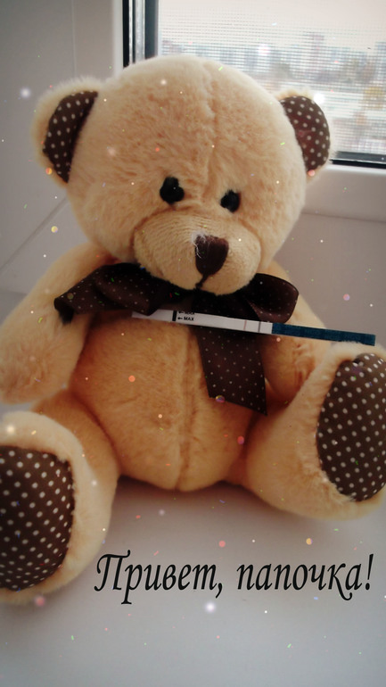 Вот такую фотографию я положила в конверт,на конверте написала "от аиста" и положила на видном месте.муж ходил мимо часа 2,увидел, подошел,прочитал и скакал минут30 сам,потом поскакал обнимать меня))))))))))