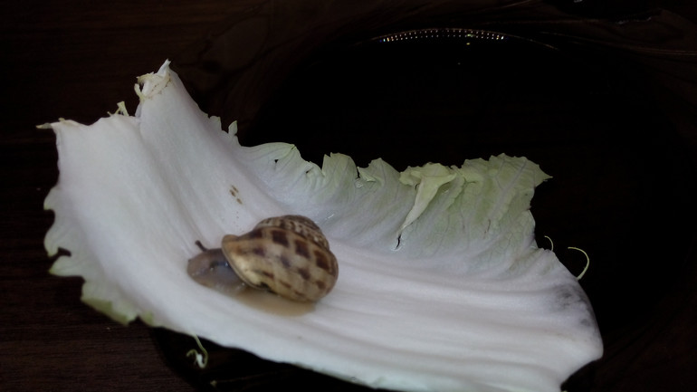 У нас такая как то 3-4 мес жила...))Тоже из клубники...салат ела так себе, приходилось всю зиму клубничкой прикармливать))..Уползала часто...из обрезанной бутылки но потом находилась(жила в шкафу с керамзитными садовыми системами..мы перцы выращивали, там был отрегулирован тропический день и ночь по температуре и освещению... В мае ее ребенок решил выгулять и потерял в травке))...