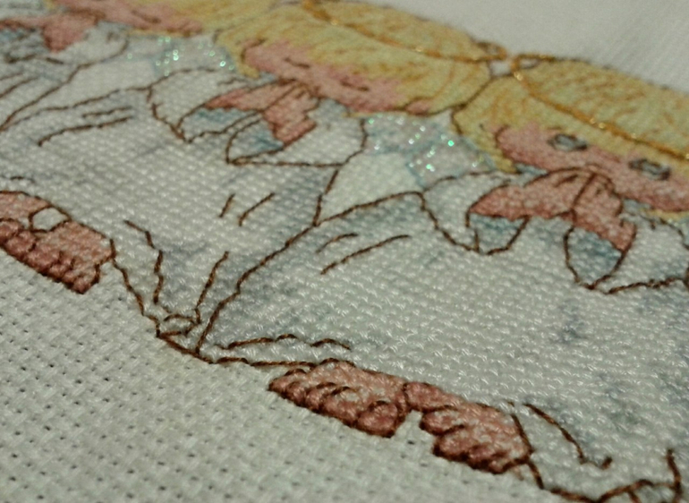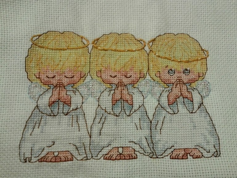 Моя первая законченная работа. В рамку я вставлять эту вышивку не буду. Все-таки не на столько уж это картина. Пусть лежит в шкафчике аккуратно и работает на меня. А я пока буду ждать своего ангела.