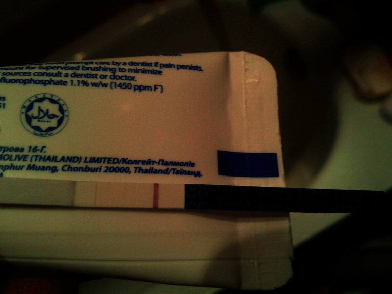 рановато конечно вы стали теститься....но все же шанс еще есть,до месячных много времени и возможно вторая полосочка появиться))). А вот то,что я виду на фото-это к сожалению реагент(((