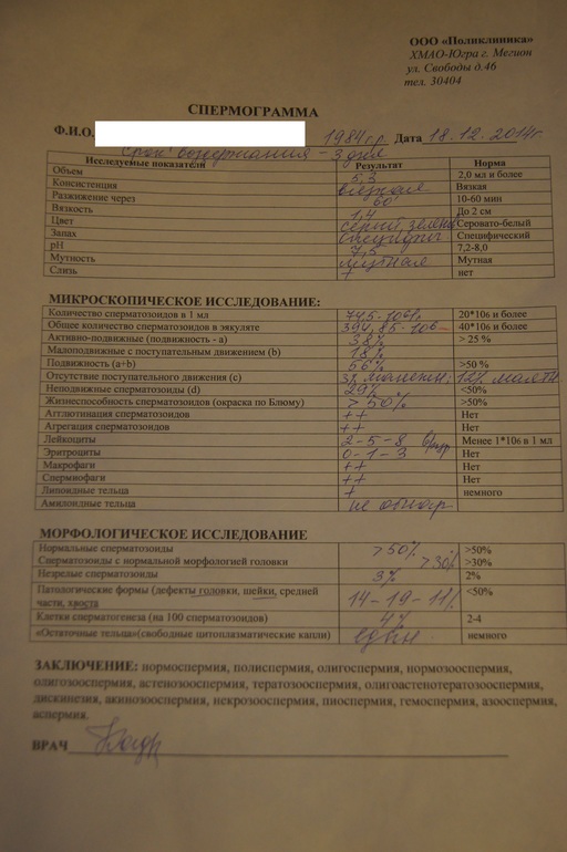 Сегодня была у гинеколога и показала спермограмму мужа., она особо ничего не порекомендовала, говорит отклонений сильных не вижу, ну за более точной расшифровкой пуст муж идет к урологу. А как же время разжижения 60 минут а агрегация++ и аглютинация ++ меня пугают! еще какие то спермофаги ++ и макрофаги++ неужели это "небольшие" отклонения ? Я уже в панике, т.к. муж не скоро к урологу попадет((( стаж планирования 4 месяца... я понимаю что это мало для тревог, ну все же я переживаю!