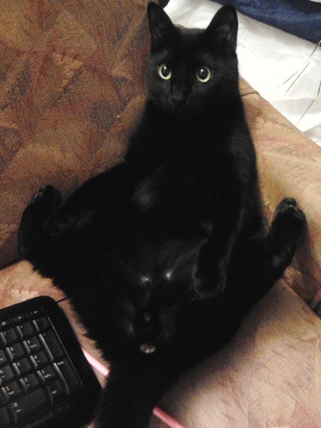 Такой смешной котяра)))) Глазищи зеленые))) У нас тоже черныши, только желтоглазики))) Все хорошо с котом будет, тем более девочка будет его навещать и гладить))) Привет Вашему от наших хулиганов))))