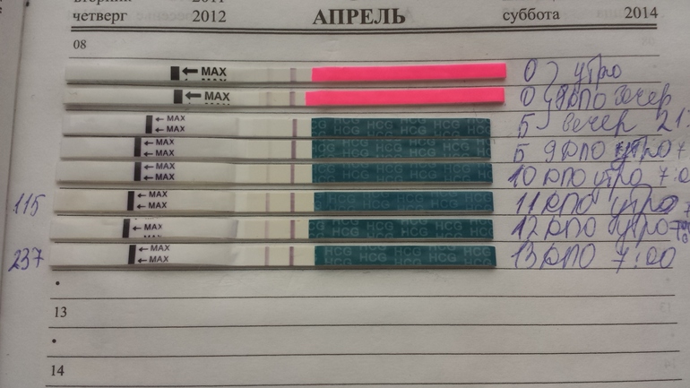 Тесты подписаны. Как видно- 11ДПО мало чем отличается от 13ДПО. А на 12ДПО тест вообще побледнел. И еще вопросик. Ноет левый бок сегодня периодически на протяжении двух-трех часов. Ничего страшного ведь в этом нет?))