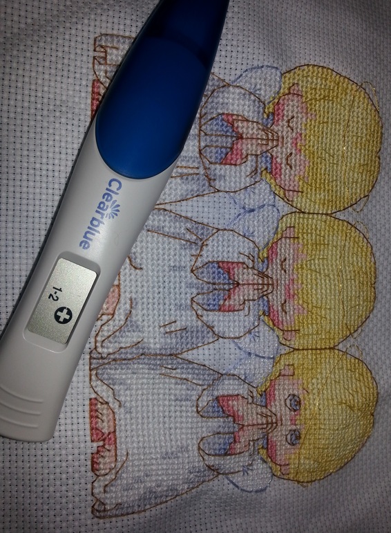 мой рациональный мозг отказывается понимать, как это произошло, но я закончила вышивку (она еще на фото нестиранная) и на след.день сделала тест... Шел 50 день цикла ))