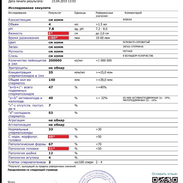 Ну впринципе не страшно. Надо чтоб доктор разжижающие препараты для спермы назначил. это будет осонывым лечением. А отклонения морфологии не значительны.... они не страшны
