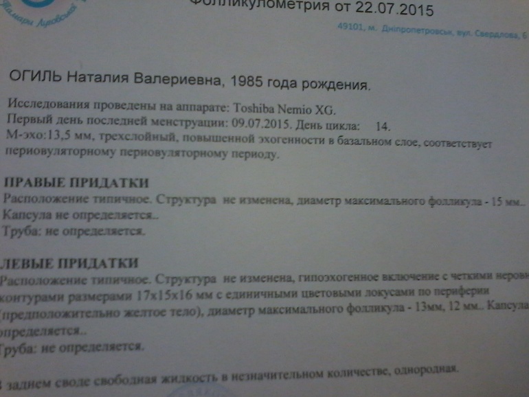 У меня после овульки тоже фоллики были 15мм и желтое тело было и жидкость. Все таки я начала пить дюфастон. И Вам если гиня прописала пить с 15 дня по 25 так значит пить.