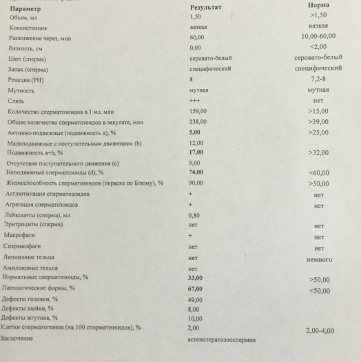 у мужчин по результатам 1 только спермограммы не судят, следует сдать несколько раз... мы 4 раза сдавали и 3 из них с таким же диагнозом как у Вас а одна вполне себе нормальная и я тем не менее забеременнела..... Удачи Вам