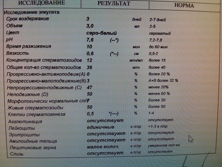 В этом цикле (как впрочем и в другие) я опять надеюсь, но видно моим надеждам не сужено сбыться..... Муж сдал СГ и результаты оказались плохими....У нас уже есть один ребенок, и муж сдавал СГ 10 лет назад, все было в пределах нормы, поэтому можно сделать вывод, что виной всему не правильный образ жизни, питание ну и конечно вредные привычки. Понято, что все поправимо и требуется время.....
