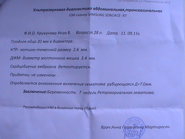 Решено было ехать в Ставрополь,там консультироваться с хорошим специалистом и ,если надо,ложиться в стационар на сохранение.И вот УЗИ. О,я так волновалась.Но,слава Богу,у нас все хорошо! Гематома вышла(видимо,поэтому мазало).Правда врач сказала,что после гематомы может появляться другая,скорректировала лечение и уже на следующий день живот вообще не тянуло! Увеличила дюфастон до 4 х таблеток в день(!).Транексам на 3 дня,магнелис и фолибер .Ну и беречь себя,конечно.Побольше отдыхать.Никаких показаний до стационара нет.Настроение прекрасное,так соскучилась по деткам.Правда мутит немного,но не рвет,не болит,не мажет. Вот так девочки я ,которая очень настороженно относилась к препаратам прогестерона пью его сейчас в такой лошадиной дозе.Через 20 дней снижать.Но реально лучше стало.Надеюсь,что и дальше все будет так же хорошо.Вот первое узи
