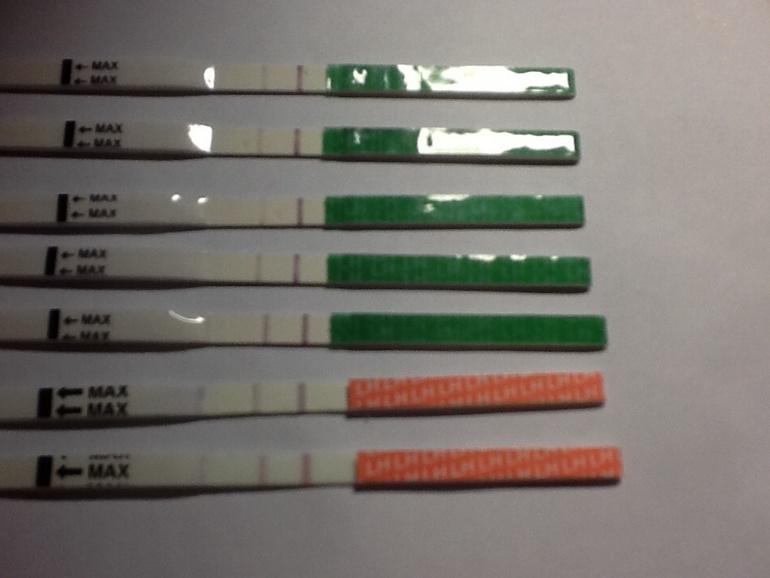 Овуляция( тесты на овуляцию)Судя по тестам у меня сегодня 2-й ДПО. Господи, как хреново-то! Почему во второй фазе состояние такое поганое: не хочется есть, тошнота от запахов, спать охота до зевоты, какая-то подавленность. Увидела сегодня "сопли" на трусиках, значит О точно была позавчера! Хоть и не дотянула вторая полоска до контрольной. Тест сегодня еще бледнее стал, смотрите сами.