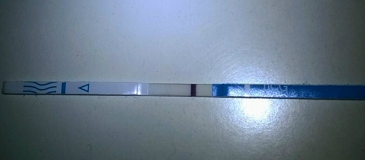 на тесте что-то есть.не могло быть о, я пила дюф с 19 дц, о бы подавил дюф. да и киста на яичнике. в любом случае я м жду, в б уже не верится.
