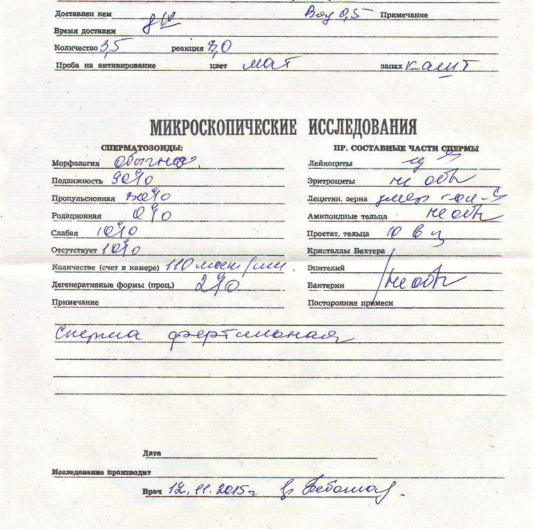 спермограмма,какова вероятность?