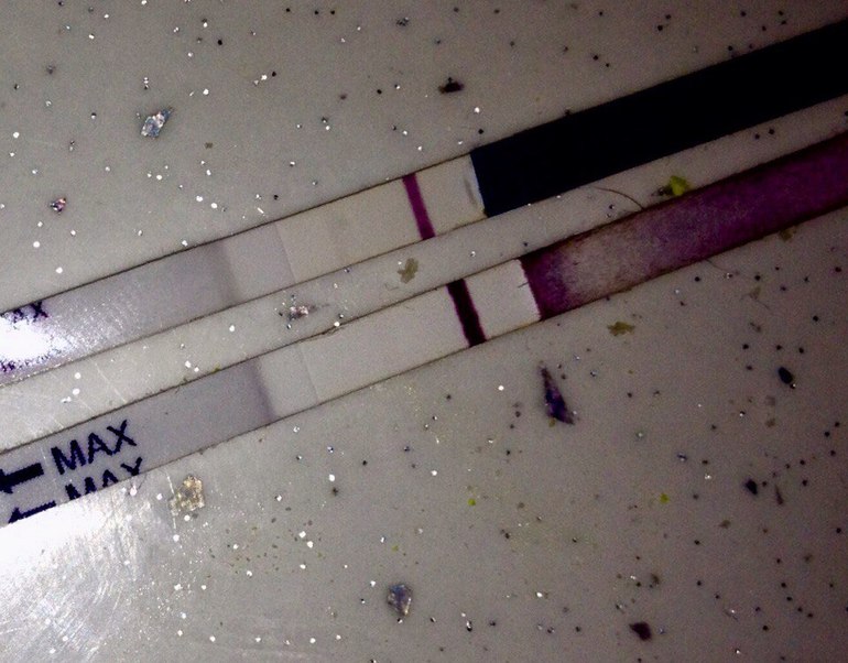 Прям на двух разных тестах реагент?) Я так думала, когда только один тест сделала. Вечером еще Эви сделала. Тоже // . То есть три теста теперь реагентов) Темное все, потому что затемнено в редакторе.