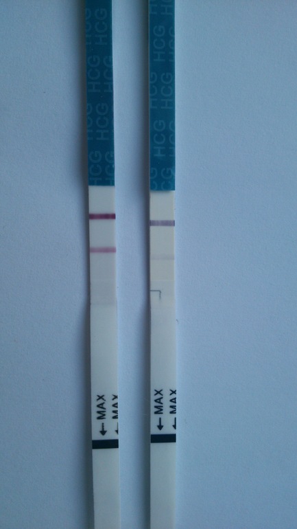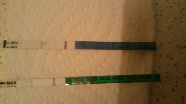 Через неделю, где-то на 8 ДПО у меня очень сильно заболела поясница, прям аццки. Болела всего лишь один день. Вкупе с ней тянул низ живота, были такие странные очучения, прям не знаю, кололо/стреляло/тянуло/щекотало. Совсем не так, как на М. Поднялась ТТ аж 37,4 (в ПМС выше 37 никогда не подскакивала) Подозреваю, эта и была пресловутая имплантация. Потому что через 2 дня я увидела призрака на тесте "Я родился Клевер". Не знаю, видно ли вам на фото, оно ниже. Полоска появилась сразу, хоть и призрачная. Это был 10 ДПО, вечер.