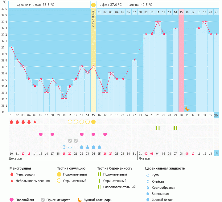 Итак, 6й цикл. После М (которые начались 10.12) мы снова приступили к любимому занятию. В этот раз я вспомнила, что я еще не пробовала лежать в позе березки! (до этого все время на животе, т.к. загиб у меня кзади). Ну, думаю, чем черт не шутит, надо попробовать. В общем, полежала так пару раз, но особых надежд не испытывала. После О продолжила мерить БТ (развлечение такое с утра капец), темпа меня не радовала (график ниже). Думаю, ну и хрен с ним. Нет так нет. 28.12 отметила хорошо корпоратив, ни одной задней мысли. 31.12 вдруг (вообще не знаю, что нашло) померила днем ТТ, была 37,2. Тут мне сказали, что это норма для 2ой фазы. Ну, хорошо. Забила. Думаю, сделаю тест на 12 дпо, а то еще ни разу не делала, нехорошо, тут так не принято