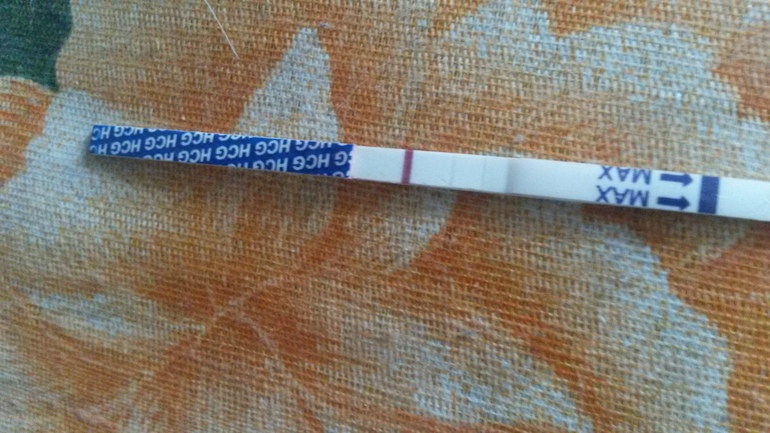 Вот так выглядит беременная слабая полосочка.Она широкая и розовая.Не смотря на свою бледность,сильно отличается от реагента на фото автора поста!