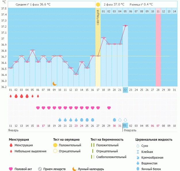 Базальная температура, ТТ, графики БТна 16 дц дф был 22 мм