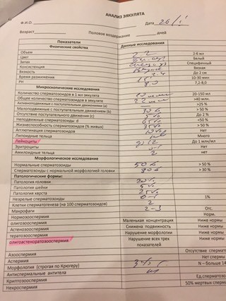да андролог назначил лечение пока направленное на избавление от геоматолического стафиллокока...в повесе...от пролечимся,опять сдавать анализ и к нему(сказал может из за этого такой результат
