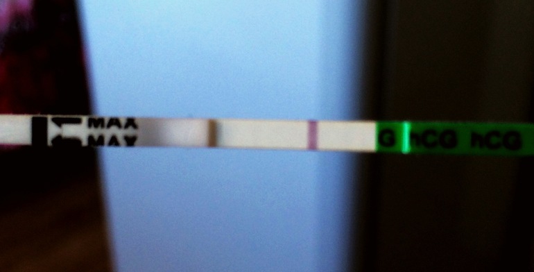 Мне кажется, что есть вторая полоска. Вообще-то эти тесты тормозные))) Мне тест "Я родился" показывал такую же призрачную полоску, когда Эви уже показывал отчетливую.