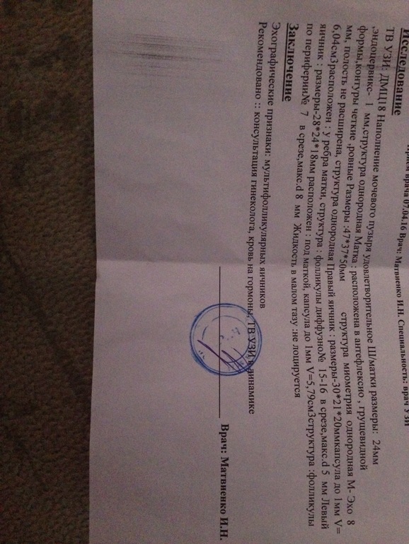 Да она сказала нет СПКЯ я прям обрадовалась про жёлтое тело Ниче не написала говорит в матке чисто но типо ещё рано не дошёл наверное когда говорю мне по УЗИ и пт гормонам СПКЯ поставили она они у тебя даже по объёму до 10 не увеличенный и на них это не кисты , я прям обрадовалась , говорит овуляции не было наверное потому что таблетки пила организм только разкочегарился щас типо работать начнёт, но да странно что про жёлтое дело Ниче , я ей сказала что я по БТ отслеживаю Может если в трубе то не видно, напугала только что. Труба длинная и есть шанс внематочной но я и до этого в дела что он расположен странно я и раньше на фото видела и что тело матки вперёд загнуто сперматозоидам попасть трудно , про жёлтое тело интересно , прям не понятно может надо было на фоликолометрию идти она дороже у нас ,завтра пойду кровь сдам думаю мож по ней хоть что то будет если температура норм держаться будет
