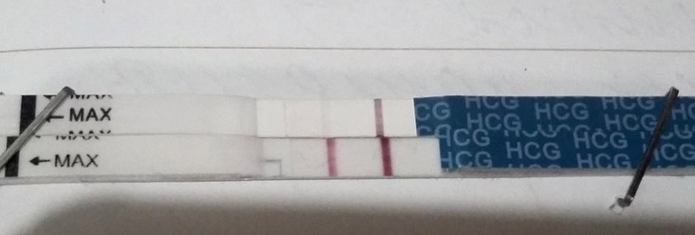 Ну вот, спустя год после ЗБ, с Божьей помощью у нас получилось!!! Тьфу тьфу тьфу!!! Пусть всё будет хорошо!!! Верхний ЭВИ-тест показал вторую слабую при ХГЧ 28! А нижний, спустя 3 дня после верхнего теста. Тест уже МАМА-ЧЕК. Оба теста на вечерний попис