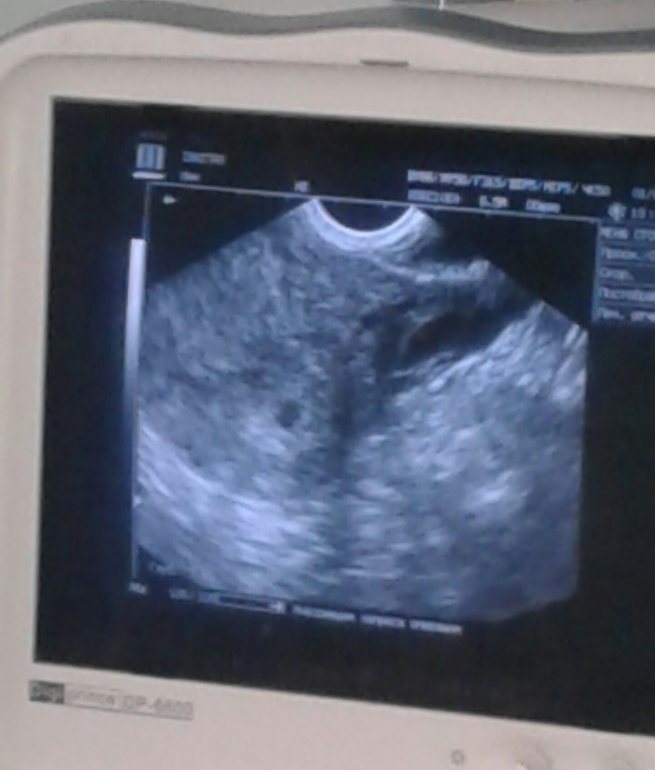 Нас нашли!!!мое крохотное темное пятнышко в самом дне матки! Уже целых 7 мм))) Соответствует сроку 5 нед 3 дня.