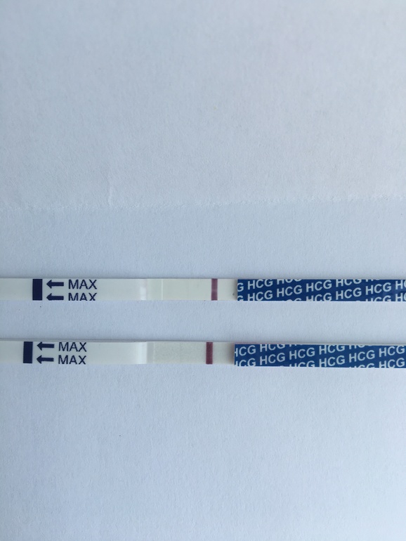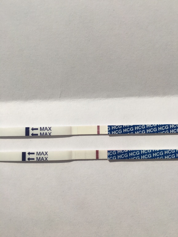 Мне конечно было невтерпёж и тест я вечером сделала, особо ничего не разглядев повторила утром. На фото верхний- вечерний, а нижний- утренний.