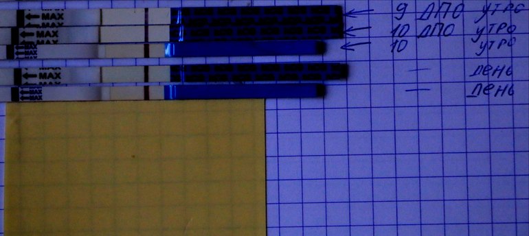 Вот все тесты вместе, верхние утро, нижние 2 это день, мне кажется тонкие тесты голубые как то лучше показывают. особенно верхний тонкий утренний
