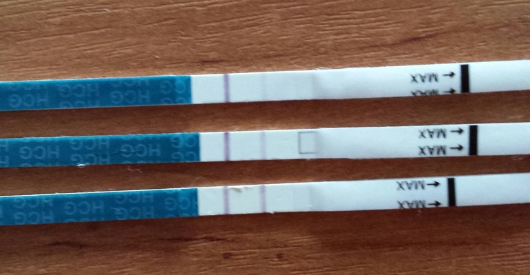 Беременность- 1 триместр ( только до 10 недель)Я уже рассказывала, что О была 30-31 июля (по тесту и по календарю). Когда именно была О, я не знаю. Тест улыбался 3 дня, 31 июля тестовая была ярче контрольной (я разбирала Клиарблю ))) С 7 дпо делала тесты на Б, и они были кристальными. Последний сделала на 11-12 дпо, и он был пуст. И вот, что в итоге получилось.