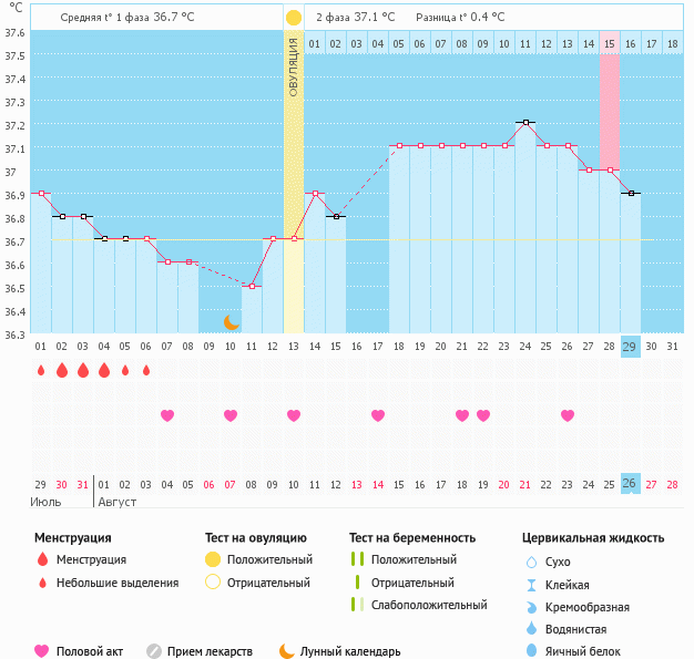 Сегодня 29дц и 16дпо (предположительно), БТ упала - сегодня 36,9 - но отметила как "не учитывать", так как за 2 часа до измерения пришлось вставать (сын просил сопроводить его в туалет), тест делала вчера днем - отрицательный, и еще я простыла ((( болит горло, ломота в мышцах и слабость, темп нет. М -нет, и пока даже намека на них нет.