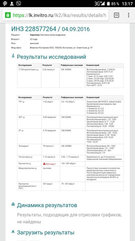 Врач в Мире Здороваья (кострома) по фамилии Антипова, мне не очень конечно понравилась изначально, но почему бы и нет, как говориться, попыталась ей довериться. Он глянув узи и произведя осмотр выписала мне Достинекс ( я пью в итоге Берголак) по 1 таблетке в неделю ( по пол таблетки 2 р в неделю) . И якобы ждать месячных и начинать делать тесты на овуляцию, мол фолликулометрия пока бесполезна при таких циклах, узи и гормонах, меня это то же конечно смутило, поскольку 5 тестов на овуляц2ию хороших стоят как 1 фолликулометрия укоторая делается раза 4 за цикл. а тестов перевести придется на гораздо большую сумму. Ну ладно, купила берголак и начала пить. И вот уже идет 4 таблетка, пролактин на середине нормы вчера был. Но ведь месячных нет.