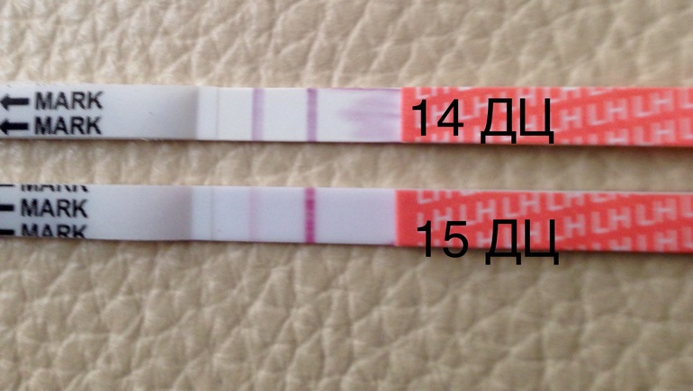 Сделала тест сейчас - день 15 ДЦ: полоска очень бледная.