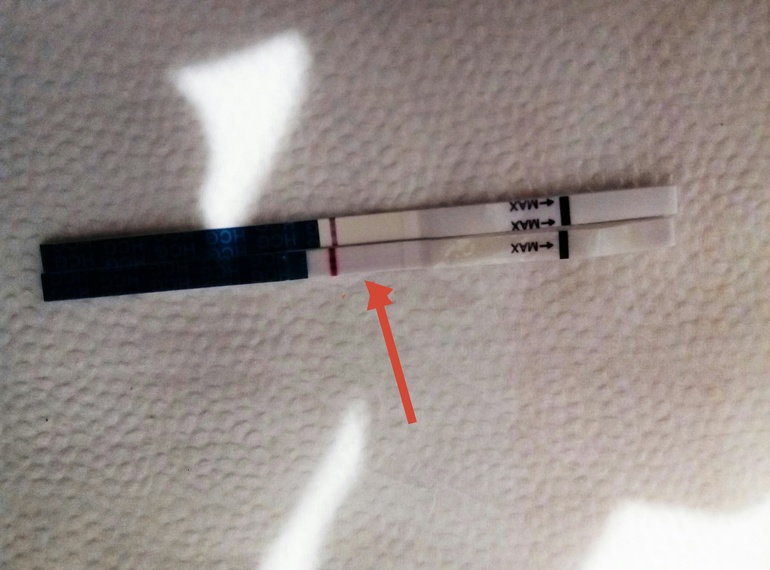 Просто..когда делала тесты..либо в день месячных, либо 1 дз..там конкретно 2 жирных полоски..не надо напрягатьзрение..они там есть и все..