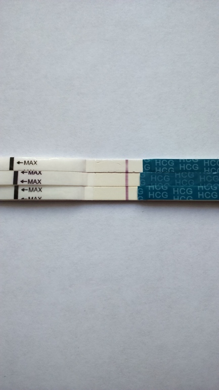 Ну думаю, совсем с ума сошла мадам...достала я пустой тест и его к ним скотчем тоже прикрепила....снова свечу,но вот на нем ни одна и ни другая полоска не просвечивается.