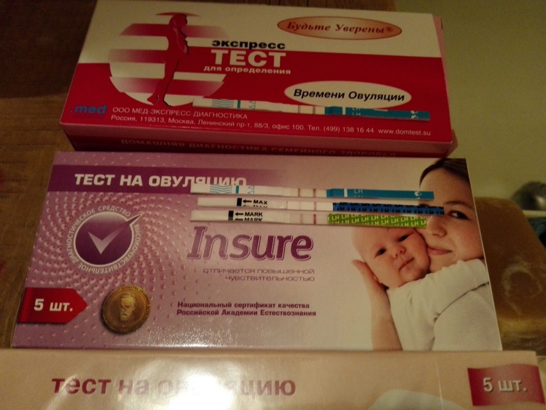 Овуляция( тесты на овуляцию)Вчера 15дц сделала один тест (сверху) - "Будьте уверены" ( в нэте хвалят несмотря на то, что дешевый). Увидела две жирные полоски и обрадовалась. Сегодня решила перепроверить. Сделала опять Экспресс-тест "Будьте уверены" (второй сверху). Опять положительный. Попробовала еще insure (в серединке)- вообще отриц. Напоследок фрау - внизу. И все разные. Вот как так?? Сегодня все три теста из одной мочи.