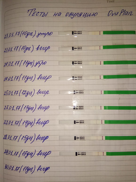 Овуляция( тесты на овуляцию)Ловлю О с 10 дц,сегодня 16 дц вроде полоска ярче!