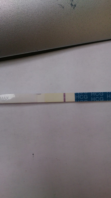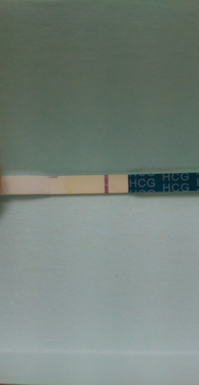 Сегодня 13-14 дпо, низ живота тянет уже несколько дней, с утра сделала тест (Эви), выдал светлую вторую полоску, но заметную, приглядываться не надо. Но, если честно, думаю, что это реагент. Через пару часов после теста увидела светло-коричневое пятнышко на ежедневке. Вчера тоже выделения были какие-то желто-коричневатые, но невыраженно. И вот не знаю, что думать. Наверное, М польют через пару часов. А так жаль, цикл был очень удачный, даже эндометрий до 11 вымахал во второй фазе! Учитывая, что у меня обычно не больше 7,5 мм эндик( вот, выкладываю фото теста утреннего, ничего не затемняла. Реагент же, да? (сразу скажу, что вживую, конечно, полоска виднее. Она даже не размытая, а четкая. Но все равно не верю ей(