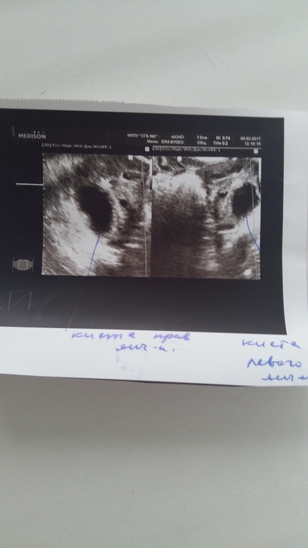 ФолликулометрияМой цикл 28 дней! В прошлом цикле была на УЗИ на 22 дц фолликулы множ.антральные, заключение: признаки поликистоза яичн. Продолжаю пить свои травочки(геникологический сбор) в этом месяце тест на О положительный на 13дц! Через 2 дня -8го февраля полетела я радостная на УЗИ, говорю последние М. Были 24-го янв! Хорошо! Она пишет 10-й дц и говорит что кисты в яичниках(( 22мм-в правом, и 19мм-в левом. Жидкость-небольшое кол-во!