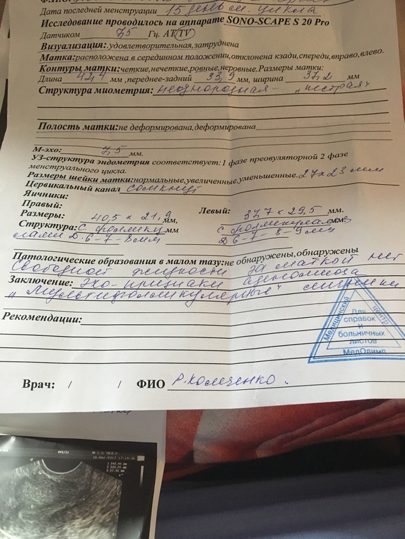 Овуляция( тесты на овуляцию)Девочки, на 15й дц пошла на узи, сегодня 16 дц пойду ко врачу... у вас было такое? Миометрий неоднородный, эндик 7,5, О не было и не будет, куча фолликов с каждой стороны, максимальный 9 мм((( что вам назначали в таких случаях что бы вернуть О? Фото заключения УЗИ подкат