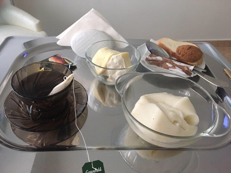 Вообщем в этот день я ещё посидела с мужем час и он уехал. Меня не тошнило, не мутило, вообще ничего!!! Чуть позже дали ужин , пить разрешили через пол часа после операции. Сказали попробуй, если затошнит то рано ещё, я сделала глоток, нормально и выдула весь стакан! Муж уехал.