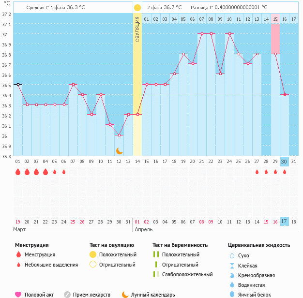 В общем ситуация такая) задержка, тест отрицательный, другого и не ждала, тк предохраняться презервативами (муж пьет антибиотики), а месячных нет. На 13 ДПО БТ была в 6 утра 37,0, но потом когда встала в 9 была 36,8, я отметила меньшую, выделения, уж простите, 2 раза в день яичный белок розового цвета, а в течении дня не много вроде как "крем-брюле". БТ держится как для 2 фазы, сегодня утром разница в пол часа 36,4 и 36,8 (1 раз зазвенел будильник, перевела его пару раз и уже перед тем как встать измерила 2 раз), в график записала 1 температуру.