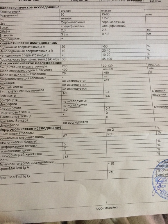 Подвижность не очень показательна, так как мы заморозили биоматерил (холодно на улице было, а мы просто в сумочке везли), поэтому может и из-за этого такой низкий показатель. Но вот всё остальное было скорее всего правдивым.