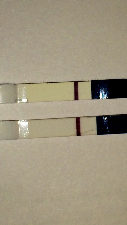 Да, это реагент. На месте тестовой полоски - белая, а по краям розовый расплылся: реагент 100%, но даже и он тако слабый, что можно сказать, и нет ничего)