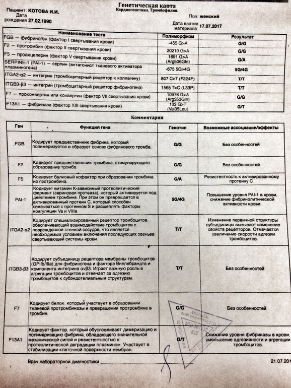 Я так поняла самое фиговое что у меня мутация Лейдена.... да и в добавку этот pai-1...